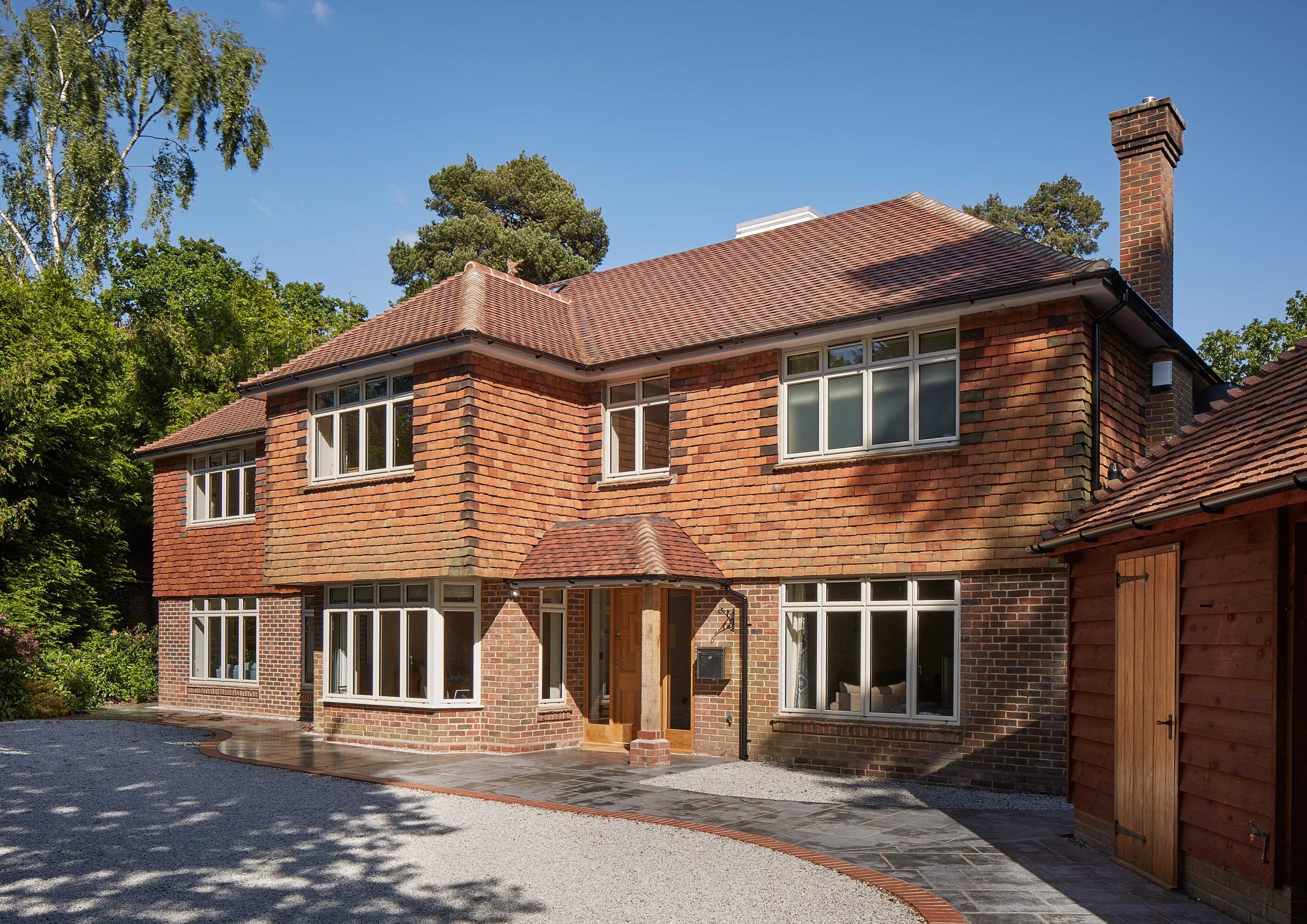 Having recently purchased this property in the character area of Hiltingbury, our clients were keen to enhance the existing layout through the addition of a new reception room to the rear of the property, whilst reconfiguring the rooms at first floor. Light is introduced into the currently dark circulation spaces through the addition of carefully positioned roof lights, illuminating the first floor corridor and new curved feature staircase, as well as the addition of glazed and recessed pocket doors throughout. A balcony to the master suite overlooks the generous gardens, creating a fantastic space to escape to and unwind.