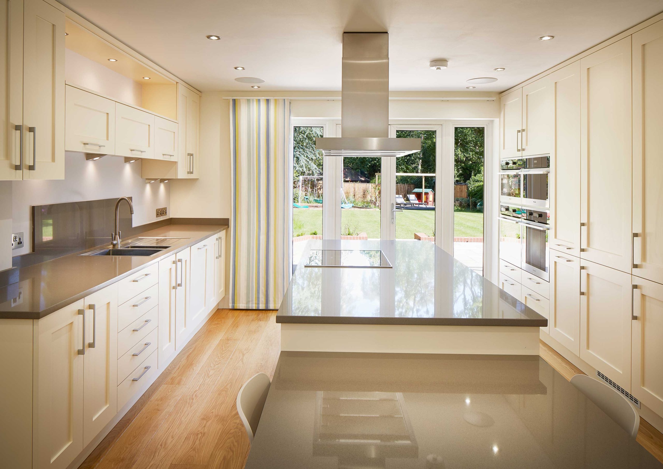 Large glazed bi-folds to the rear allow the space to be fully opened up to the garden in the summer months, flooding the spaces with light and creating a feeling of space and openness. The alterations modernise the property without losing its character, creating a fantastic family home.